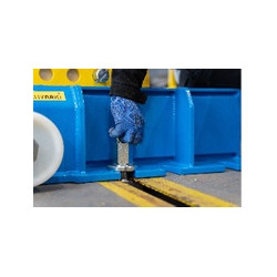- Darbo zonoje presas yra tvirtinamas prie grindinės fiksavimo sistemos specialiais įtvarais;